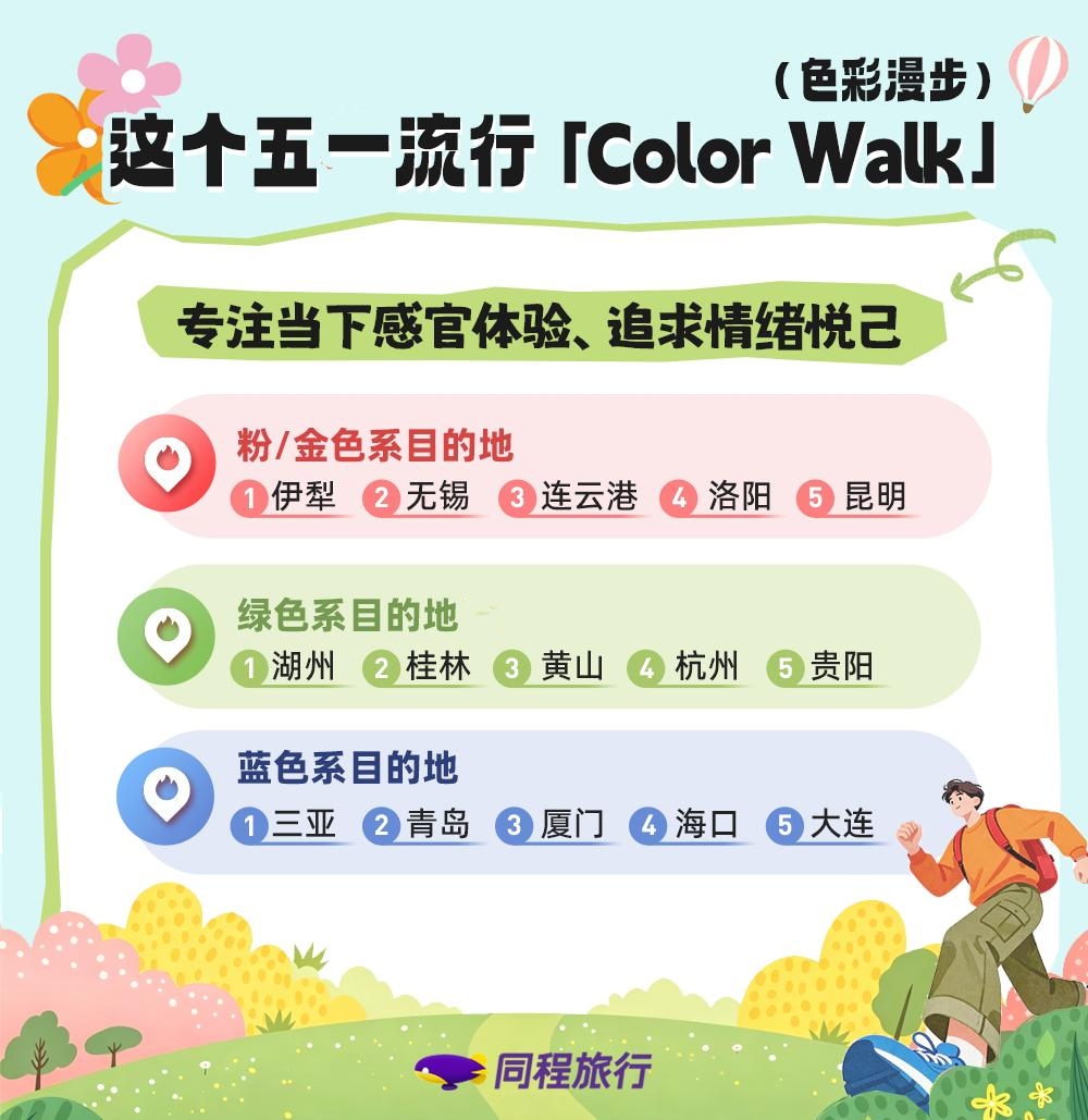 2026年,“Color Walk”成为年轻人探索城市的新方式。同程旅行数据显示,以色彩为关键词的五一目的地搜索量同比增长超200%,绿色系城市搜索热度同比增长48%。绿色系热门目的地包括安吉、阳朔、黄山、杭州、贵阳。贵阳作为西南地区唯一入榜城市,成功跻身这一潮流赛道。