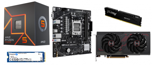 AMD 锐龙5 7500F的性能虽然略逊于英特尔的i5-14400处理器,但是价格差了几百元之多。这款处理器拥有6核12线程,核心频率3.7GHz,加速频率可达5.0GHz,二级缓存6MB,三级缓存32MB,超大缓存对于游戏而言是更为有益的。主板选择了华硕PRIME A620M-K,这是一款DDR5版本的A620芯片组主板,这款主板拥有2条DDR5内存插槽,最高可支持DDR5-6400(OC),一组M.2 PCIe 4.0接口,4组SATA接口。