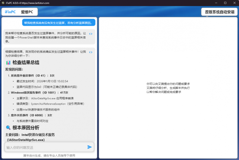 今天,我们向您推荐一款革命性的 AI 运维工具——iFixPC,它能够通过自然语言理解您的需求,自动生成并执行 PowerShell 脚本,彻底改变技术人员的日常工作方式。