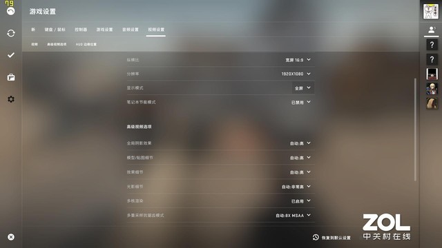 针对MX350独显的特性,我们选择了《CS:GO》以及《DOTA 2》这两款对显卡性能要求不高的游戏进行了体验。分辨率环境均为1920×1080,两款游戏在体验时都将画质开到了最高,并且都开启了抗锯齿,下面是测试过程的截图: